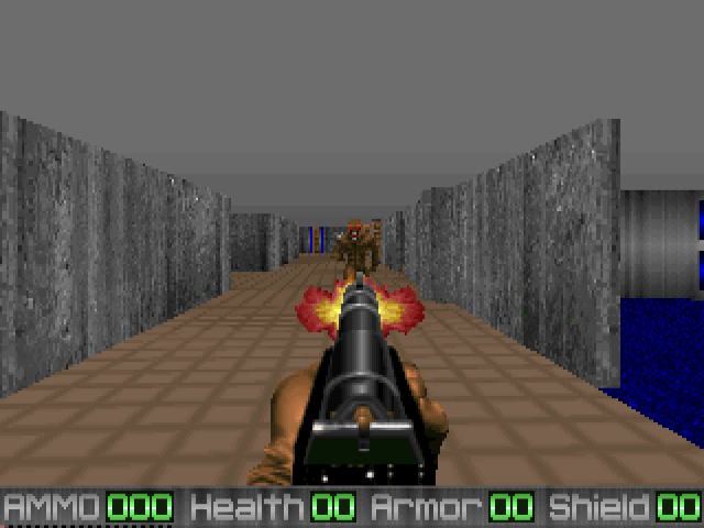 Only two references remain to the assault rifle in the final product. (Which I suppose is more than the poor bayonet gets.) The player character is always shown wielding one in third-person, which only matters in multiplayer. It’s also the weapon wielded by enemy Zombiemen. This shows that it canonically deals the same damage as the pistol while firing far slower. That explains why Doomguy never even bothers to pick one up despite pilfering every other weapon during his rampage through hell.