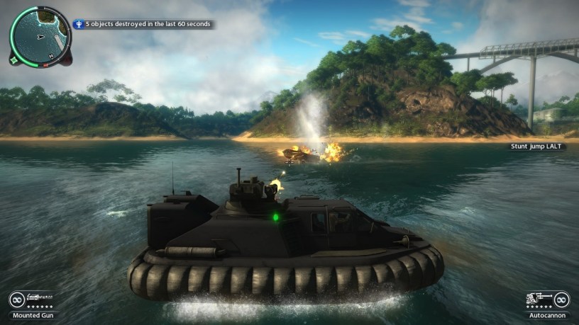 As I mentioned before, it certainly stands alone as a game element. As Just Cause 2‘s only amphibious vehicle, there’s nothing else that can do what it does. The problem is, what it does is almost entirely unneeded. I 100%ed the game on Hardcore and have over 200 hours in the same save file, but not once did I ever see a reason to use a Hovercraft. There was simply never a situation that needed a vehicle rapidly shifting between water and ground.