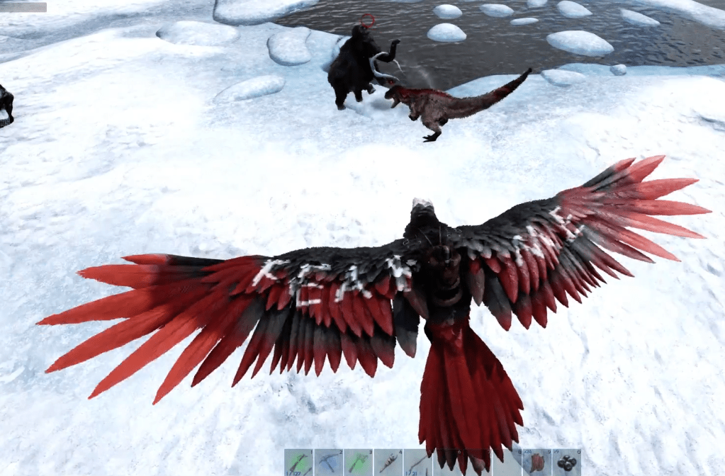 My character, Bogardt, was the combat specialist. She didn’t have the patience for proper base-building beyond the sort of emergency mud-huts one makes while in a panic, but she was fearless at throwing herself into situations to save tames or secure resources less replaceable than herself. She was often naked due to her sacrificial playstyle, but she was very tanky, speedy, and scrappy at exploiting monster AI to either fight, kite, or lure them away from objectives until Asmund could rescue whatever was in danger. Usually by swooping in on the back of…